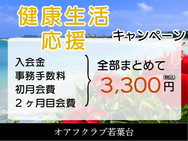 ウィンター入会キャンペーン入会金、事務手数料、1ヶ月目/2ヶ月目月会費がお一人3,300円(税込)、12月28日(金)まで。各月先着25名様。